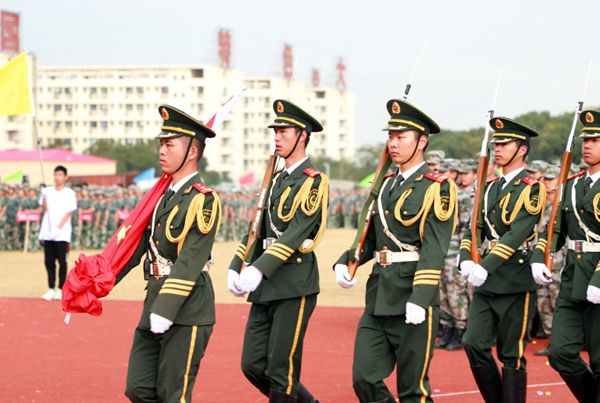 隨后軍訓指揮員向校長報告列隊完畢,請校長檢閱,在軍訓指揮員何躍濤和總策劃李奇平的陪同下,劉明初校長檢閱了參訓的六十七支方隊。檢閱中,校長親切問候,同學鏗鏘回應,“為校爭光”的呼喊響徹云霄。