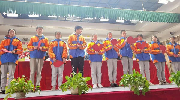 在大會最后一環(huán)節(jié),各班代表宣讀自己的心愿卡,對中考寄予美好的心愿,同時號召全體同學心懷夢想,考入理想學校,共同努力書寫母校新華章!