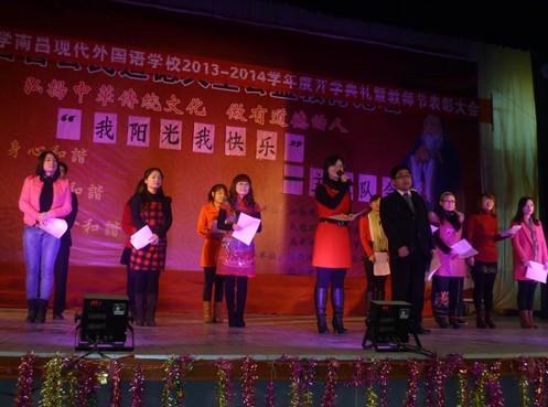 隊會在莊嚴的少先隊出旗曲中拉開序幕,少先隊隊歌《我們是共產(chǎn)主義接班人》響徹大廳。整個隊會采用互動形式,臺上臺下融匯一起,小學一至六年級的同學們在舞臺上用文藝形式表現(xiàn)出學校貫行“陽光教育”的主題,青年教師也著裝上臺朗讀,表達了爭做陽光教師的心聲,一曲《陽光總在風雨后》將教師團結合作,共建陽光和諧校園。