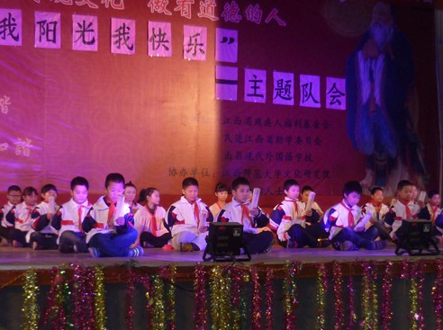 隊會還重點展示了“現(xiàn)外”學校英語特色教育和素質教育。最后,主題隊會在家長的熱烈掌聲中結束。