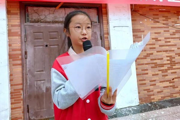 學(xué)生代表魏雨彤國(guó)旗下講話