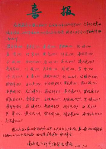 2014年中考已經(jīng)落下帷幕,王桂紅的辦公桌上放著一大疊中考資料,既有各班級(jí)、各學(xué)生的中考成績總結(jié),也有與其他學(xué)校中考成績的對(duì)比分析資料。王桂紅說,對(duì)考試成績做總結(jié)分析是非常重要的一項(xiàng)教研工作。每次考試,學(xué)校都會(huì)精心組織教師進(jìn)行數(shù)據(jù)分析,每次分析也是精細(xì)到每個(gè)班級(jí)、每位學(xué)生、每門學(xué)科,并從分析中汲取經(jīng)驗(yàn)教訓(xùn),為以后的工作做好參謀。戒驕戒躁、精益求精,這也正是南昌現(xiàn)代外國語學(xué)校象湖校區(qū)連續(xù)兩年中考取得佳績的另一重要原因。