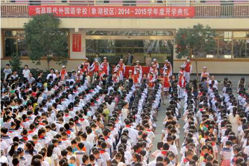 9月5日上午8時,南昌現(xiàn)代外國語學(xué)校(象湖校區(qū)) 的操場上鼓樂齊鳴,全體師生齊聚一堂,隆重舉行了2014新學(xué)年的開學(xué)典禮,學(xué)校校長李金玉等校領(lǐng)導(dǎo)及部分師生參加此次典禮。