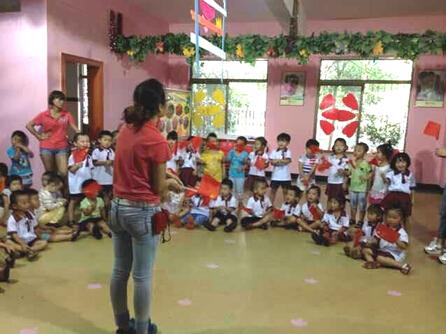 9月29日,江西迪斯尼幼兒園在國慶節(jié)來臨之際組織開展了“紅歌嘹亮,熱愛過祖國”主題慶?;顒印1敬位顒釉谟變簣@大廳舉行,由園長劉小清主持開幕儀式。