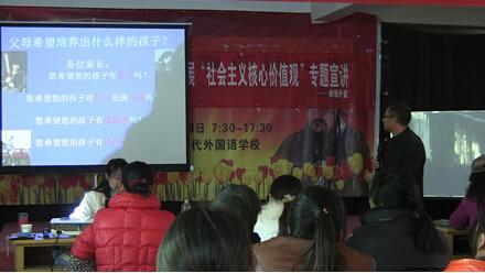 ? 為進(jìn)一步增進(jìn)家校之間的聯(lián)系,促進(jìn)學(xué)校與家庭、教師與家長(zhǎng)的交流溝通,更好的形成家校教育的合力,12月17日下午,南昌現(xiàn)代外國(guó)語(yǔ)學(xué)校舉辦了“智慧父母,成長(zhǎng)導(dǎo)航”家庭親子教育服務(wù)公益活動(dòng),著名“親子教育專(zhuān)家、中國(guó)親子英語(yǔ)第一人”陳林老師為家長(zhǎng)做了精彩報(bào)告,學(xué)校會(huì)議報(bào)告廳座無(wú)虛席,除我校學(xué)生家長(zhǎng)外,其他外校學(xué)生家長(zhǎng)近200余名慕名前來(lái)聽(tīng)取了報(bào)告。