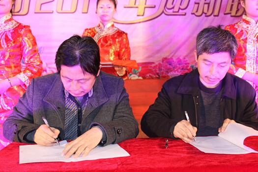 在聯(lián)歡會演出正式開始前,特別安排了集團(tuán)2015年經(jīng)營工作目標(biāo)責(zé)任狀簽訂儀式,集團(tuán)董事長胡樂平分別與集團(tuán)總部各部門負(fù)責(zé)人及下屬各單位代表簽訂了2015年度經(jīng)營目標(biāo)責(zé)任狀。