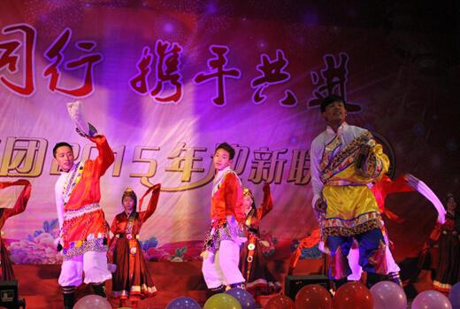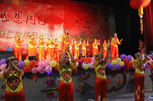 2015年經(jīng)營工作目標(biāo)責(zé)任狀簽訂儀式結(jié)束后,聯(lián)歡會正式開始。此次聯(lián)歡會以“感恩同行 攜手共進(jìn)”為主題,由集團(tuán)各單位、各部門奉獻(xiàn)的舞蹈、歌唱、小品、朗誦、士氣展示等21個節(jié)目輪番登場,精彩紛呈。整臺演出始終洋溢著歡樂、喜慶的氛圍,充分表達(dá)了聚仁堂人加快發(fā)展、共建和諧的美好祝愿。
