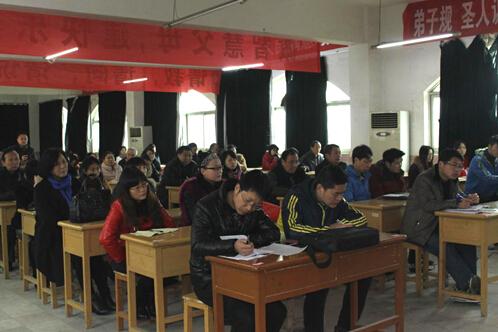 全體教職工會上認真聽講