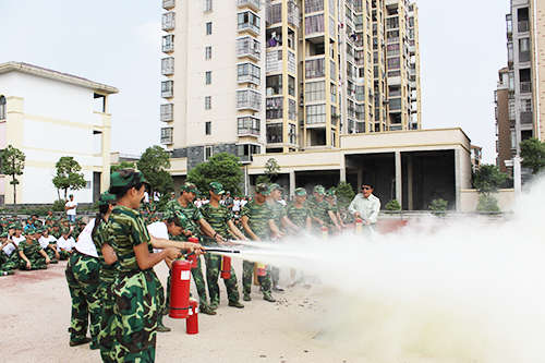 學(xué)院武裝部部長(zhǎng)周圣華向2015級(jí)新生就如何報(bào)火警、火災(zāi)的預(yù)防、火場(chǎng)自救及逃生方法等消防安全基本常識(shí)進(jìn)行了講解。周部長(zhǎng)現(xiàn)場(chǎng)演示了滅火器的操作程序和消防水帶、消防槍的正確使用方法,同學(xué)們一一上前體驗(yàn)。