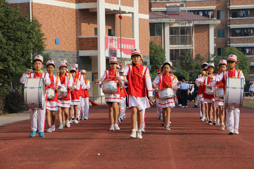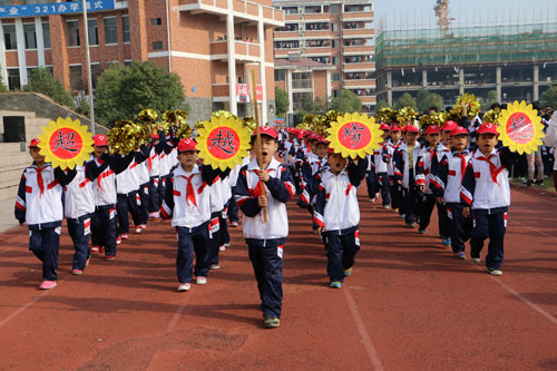 開(kāi)幕式上,伴隨著《運(yùn)動(dòng)員進(jìn)行曲》激昂的旋律,在邁著整齊步伐的國(guó)旗護(hù)衛(wèi)隊(duì)的帶領(lǐng)下,彩旗隊(duì)和禮儀隊(duì)穿著統(tǒng)一服裝,活力十足的走過(guò)主席臺(tái),緊隨其后的是從高年級(jí)到低年級(jí)依次入場(chǎng)的各班方隊(duì),他們踏著正步,斗志昂揚(yáng),口號(hào)響亮,激情滿腔。