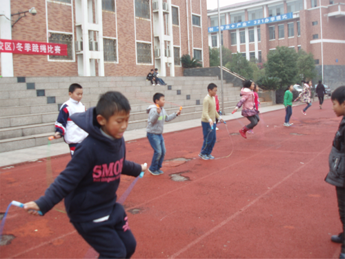 為更好地開展冬季體育運(yùn)動(dòng),增強(qiáng)學(xué)生的體質(zhì),培養(yǎng)學(xué)生團(tuán)結(jié)、拼搏的精神,12月23日,南昌現(xiàn)代外國(guó)語學(xué)校(象湖校區(qū))舉行了一場(chǎng)緊張、激烈的跳繩比賽。操場(chǎng)上一片歡騰景象,一根根彩繩、一個(gè)個(gè)純真的笑臉在燦爛的陽光下飛舞、綻放?!案骶透魑唬A(yù)備——跳?!薄班赅赅辍崩K子不斷拍打地面,啦啦隊(duì)更是不甘示弱,喊得一陣比一陣響,喊得一陣比一陣亮。這次跳繩比賽凝聚了老師,同學(xué)的熱情。比賽前,為集體爭(zhēng)光的堅(jiān)強(qiáng)信念每天激勵(lì)著同學(xué)們努力練習(xí),你追我趕,積極備戰(zhàn)。比賽中,各個(gè)同學(xué)精神抖擻,信心十足,賽場(chǎng)上龍騰虎躍,身手不凡。最終由四(7)班的鄔梓賢與六(2)的徐宇豪分別以一分鐘雙腳跳216與210的好成績(jī)共同獲得一等獎(jiǎng)。