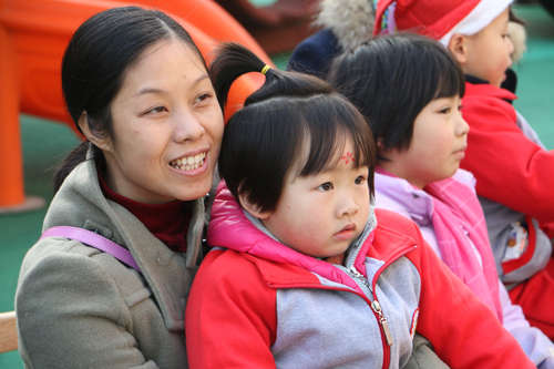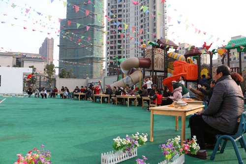 活動(dòng)開場,全體幼兒、家長手牽手入場圍城一個(gè)大圓圈共跳舞蹈“鈴兒響叮當(dāng)”;緊接著,園長和家長代表各自發(fā)言來表達(dá)對(duì)幼兒園節(jié)日的祝福;發(fā)言結(jié)束后,幼兒和教師一起表演,孩子們將自己學(xué)到的舞蹈全方位的展示給爸爸媽媽們;家長和孩子們一起參加的親子游戲?qū)⒂變簣@的快樂氣氛推向又一個(gè)高潮,親子游戲精彩紛呈,“剝桔子”、“搶椅子”、“蹲蹲樂”、“大腳踩小腳”等親子游戲贏得了大人們孩童般的天真笑聲,孩子因開心而樂,家長因滿意而笑,快樂匯聚成幸福的海洋,讓大家深深感受到江西迪斯尼幼兒園朝陽園這個(gè)大家庭的溫暖。