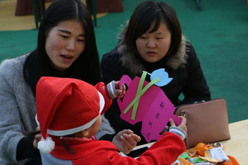 園外寒風(fēng)襲人,園內(nèi)春意融融,五彩的氣球、飄飛的彩旗、繽紛多彩的圣誕樹,將活動(dòng)的現(xiàn)場渲染得異?;鸨?,每個(gè)人的臉上都寫滿了歡樂和喜悅。