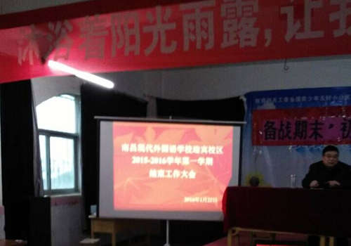 瑞雪紛飛,預(yù)兆豐年,迎著瑞雪的腳步,南昌現(xiàn)代外國(guó)語(yǔ)學(xué)校迎賓校區(qū)全體教職工匯集在圖書館三樓會(huì)議室召開(kāi)了2015-2016學(xué)年第一學(xué)期結(jié)束工作大會(huì),與會(huì)的校領(lǐng)導(dǎo)有楊校長(zhǎng)、初中部鄧校長(zhǎng)、小學(xué)部傅校長(zhǎng)和高中部肖主任,大會(huì)由鄧校長(zhǎng)主持。