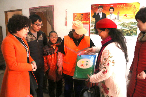 學(xué)校董事長(zhǎng)劉雁華向?qū)W生家庭送上慰問金和慰問品