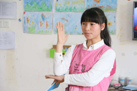 鄧美蘭老師帶領(lǐng)孩子一起玩游戲