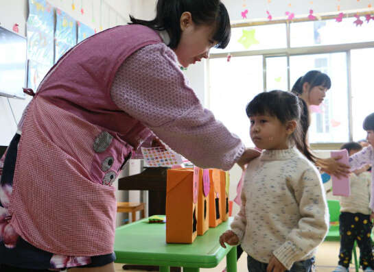 小朋友接受老師的表?yè)P(yáng)