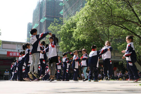 “唱起來跳起來,飛揚美麗的虹……”2016年春季開學后,南昌現(xiàn)代外國語學校小學部校園集體舞《童心舞動》在校園推廣,立刻流行各班、風靡校園,成為校園里一道亮麗的風景。