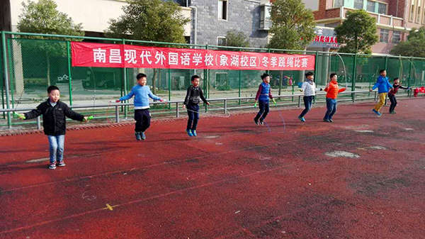 為了貫徹“健康第一”的指導思想,響應國家“陽光體育”的號召,激發(fā)學生的體育興趣,提高學生的運動技術水平。讓學生形成新的健康觀念和終身體育意識,培養(yǎng)學生之間的團結、合作精神與積極進取精神,增強班級間的友誼與班級凝聚力,活躍校園文化生活。南昌現代外國語學校(象湖校區(qū))12月22日下午舉行了2—6年級學生冬季跳繩比賽。