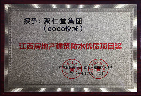 會上,集團的聚仁國際、COCO悅城喜獲2016年度江西建筑防水優(yōu)質(zhì)項目,并在會上獲得了表彰。此外,會議還對2016年度江西房地產(chǎn)建筑防水有突出貢獻的個人進行了頒獎并對南昌市建筑防水協(xié)會成員進行了授牌儀式。