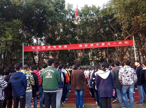 接下來?xiàng)钚iL講話,他對全體高三師生提出了希望與要求,希望老師們不負(fù)家長、學(xué)校和社會(huì),助學(xué)生成就夢想,把最有效的得分方法教給學(xué)生,為學(xué)生奮斗100天。希望同學(xué)們樹立信心、發(fā)揮所長、端正態(tài)度、磨煉意志;講究科學(xué)的方法,積極主動(dòng)的查缺補(bǔ)漏、堅(jiān)持煅煉并注意勞逸結(jié)合,一份耕耘一份收獲。楊校長最后以蒲松齡對聯(lián)與學(xué)生共勉:有志者事競成,破釜沉舟,百秦關(guān)終屬楚,苦心人天不負(fù),臥薪嘗膽三千越甲可吞吳。
