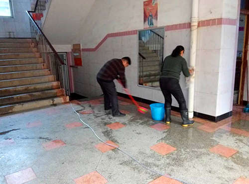 在這次衛(wèi)生大掃除活動(dòng)之前,學(xué)校楊校長(zhǎng)對(duì)各責(zé)任區(qū)的衛(wèi)生包干區(qū)工作進(jìn)行了具體分工。上午8:10,雖然天氣陰沉沉下著雨,但大家的積極性一點(diǎn)未受影響,都按時(shí)來到會(huì)議室就此次活動(dòng)聽取安排,各小組負(fù)責(zé)人接受任務(wù)后帶領(lǐng)各組成員就忙碌開了,有的拿掃帚、有的拿刷子、有的拿抹布對(duì)教學(xué)樓過道、樓梯、扶手,門窗等進(jìn)行洗刷,尤其是衛(wèi)生間進(jìn)行了徹底的打掃,在打掃過程中,大家積極配合,不怕臟、不怕累,干得熱火朝天,雖然衣服濕了、鞋子濕了,但沒有一個(gè)人抱怨,目的只有一個(gè),讓學(xué)生有一個(gè)安心、舒適的學(xué)習(xí)氛圍,讓老師有一個(gè)好的教學(xué)環(huán)境,讓校園環(huán)境有一個(gè)新的變化。經(jīng)過大家2個(gè)多小時(shí)的共同努力,整個(gè)教學(xué)樓、綜合樓變的凈了,空氣也變清新了。