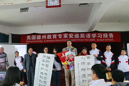 此次安迪老師生動活潑的教學(xué),使教學(xué)過程融知識性、趣味性于一體,不僅讓學(xué)生在游戲中學(xué)會了日常的英語口語,更重要的是激發(fā)起了他們學(xué)習(xí)英語的熱情。同時,不僅讓安迪老師親身感受中國文化及我校辦學(xué)特色,也拓寬了我校學(xué)生的國際視野,促進了中美兩校教師的交流合作,受到了師生們的一致歡迎。