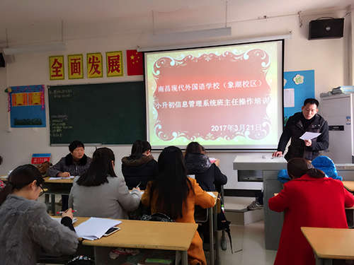 為進(jìn)一步落實2017年南昌城區(qū)小升初報名暨信息采集工作會議精神,更好地開展2017年南昌市小升初報名暨網(wǎng)上信息采集工作,3月21日,南昌現(xiàn)代外國語學(xué)校(象湖校區(qū))在參加青云譜區(qū)召開2017年小升初工作布置會的第二天,組織六年級班主任召開小升初信息采集工作培訓(xùn)會。