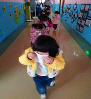 活動中,隨著幼兒園消防警報聲響起,全園教職工立即停下手中的工作,各班教師迅速按緊急預(yù)案的疏散線路帶領(lǐng)幼兒拿起濕毛巾,捂住口鼻、貓著身子,彎腰小步快走,在老師的指揮下按指定的路線,沿著各通道安全出口,緊張有序逃離到指定地安全場地集合,老師迅速地清點人數(shù),并向總負責人報告。