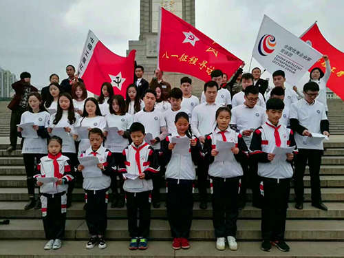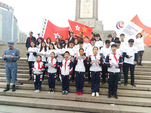 4月11日上午南昌現(xiàn)代外國語學校(迎賓校區(qū))部分中小學生在校領(lǐng)導的帶領(lǐng)下,乘車前往南昌八一起義紀念塔下參加了“為紀念建軍90周年,尋訪八一征程路中國夢鐵軍情”活動。