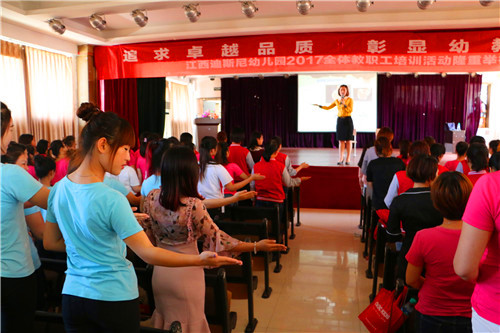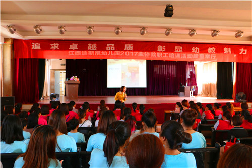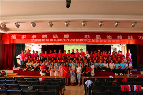 為了加強教師技能,加強教師間的溝通與交流,增進(jìn)同事感情,增強團(tuán)隊凝聚力,5月13日,江西迪斯尼·幼兒園2017年全體教師培訓(xùn)活動在江西工商職業(yè)技術(shù)學(xué)院大禮堂順利舉行,迪斯尼幼兒園六個園所全體教職工近兩百人參加此次活動。