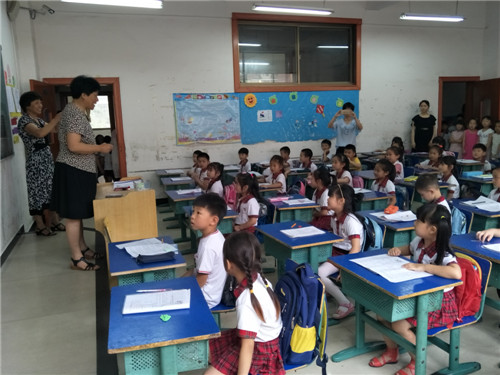 踏進校園,一切都讓孩子們感到新鮮。他們努力地尋找著小學(xué)與幼兒園的不同之處,認真地觀察著校園里的每個角落。在操場上李校長、張校長熱情的接待我們,隨后,在兩位校長的引導(dǎo)下,孩子們懷著好奇和憧憬參觀了小學(xué)的一年級等校園環(huán)境。課堂上,哥哥姐姐認真聽講、積極舉手、專心學(xué)習(xí)的情景給孩子們留下了深刻的印象??粗鴮挸髁恋慕淌?,聽到小學(xué)生朗朗的讀書聲,孩子們對成為一名小學(xué)生的愿望更加強烈了。小學(xué)的校長還讓孩子們坐在他們的位置上體驗上課的感覺,并交代了孩子們手該如何擺放,回答問題時,舉手的正確姿勢。