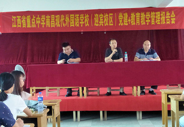 為加強(qiáng)學(xué)校黨建+教育教學(xué)管理工作,南昌現(xiàn)代外國(guó)語(yǔ)學(xué)校(迎賓校區(qū))于2017年9月2日下午4點(diǎn),組織全體教師學(xué)習(xí)了《黨建+教育教學(xué)管理》。本次大會(huì)邀請(qǐng)到南昌一中熊春和書記為教師們授課。