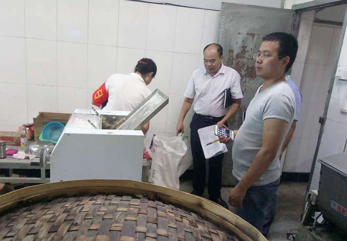 首先檢查組人員對食堂餐飲許可證、冷藏消毒、設(shè)備使用、食品留樣、健康證、進貨食品索證索票、臺賬記錄等情況進行了認真細致的檢查。檢查組發(fā)現(xiàn)食堂管理制度不全,未按標(biāo)準(zhǔn)記錄原料采購臺賬、貯存食品方式不規(guī)范、不合標(biāo)準(zhǔn)。