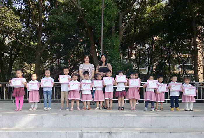 在莊嚴(yán)的國旗之下,園長媽媽給上周“禮儀小天使”頒發(fā)了獎狀,鼓勵全園小朋友向他們學(xué)習(xí),能夠有一天站在臺上,在五星紅旗的見證下獲得榮譽,也希望站在臺上的“禮儀小天使”能夠給其他小朋友做榜樣。