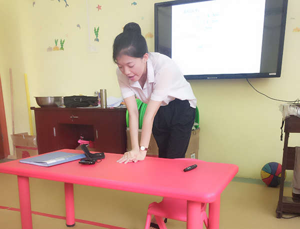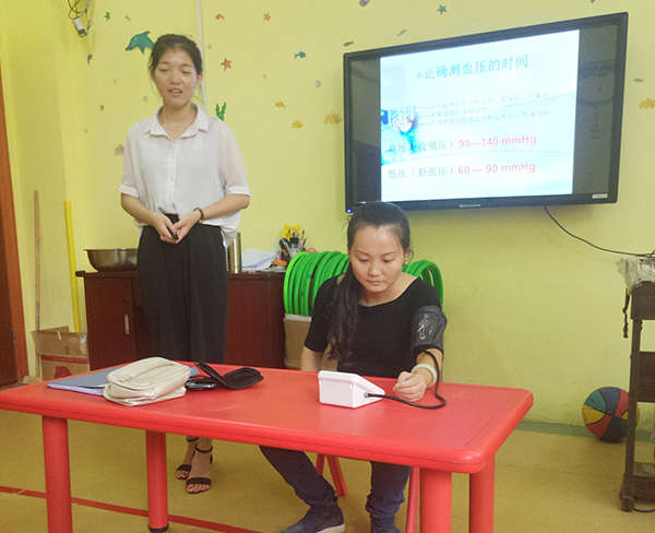 程老師通過一個(gè)個(gè)實(shí)例,為大家講解如何為心肺復(fù)蘇搶救以及它的作用和專門針對(duì)的對(duì)象和實(shí)施者的要求、創(chuàng)傷急救等知識(shí)。關(guān)注到教師們教育的對(duì)象——幼兒年齡的特殊性,程老師又重點(diǎn)講解了幼兒心肺復(fù)蘇術(shù)和成人心肺復(fù)蘇術(shù)的不同之處及應(yīng)重點(diǎn)注意的方面,并通過現(xiàn)場(chǎng)模擬示范,詳細(xì)地進(jìn)行了心肺復(fù)蘇的動(dòng)作演練,教師們也紛紛參與,進(jìn)行模擬操作。