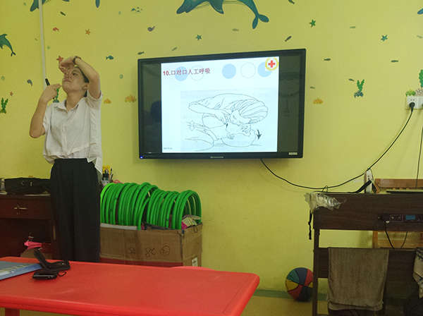 為加強(qiáng)幼兒園安全工作的管理,提高每位教職工的安全教育意識(shí),使教師能在幼兒園突發(fā)事件中運(yùn)用一些簡(jiǎn)單易行的急救知識(shí)進(jìn)行急救,保證幼兒有一個(gè)安全、健康的成長環(huán)境,近日,迪斯尼金沙園組織全體教職工開展了急救知識(shí)培訓(xùn)活動(dòng)。幼兒園特邀請(qǐng)了江西省全員健康中心的程老師為大家講解“現(xiàn)場(chǎng)救護(hù)知識(shí)”。