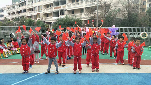活動由小四班合唱的《國旗國旗真美麗》拉開序幕,其他小朋友們都在一旁為他們加油打氣,每位幼兒手中都拿了一面小紅旗跟隨著音樂在舞臺中間搖擺、歌唱。接下來由小三班帶來了動力十足的《上學(xué)歌》,緊隨其后的是小二班為大家獻(xiàn)上的一首《祖國祖國,我們愛你!》,音樂一響起小朋友們很快就跟上了節(jié)奏,高聲歌唱“祖國、祖國,我們愛你!”小一班的《讓我們蕩起雙槳》讓所有小朋友們和著音樂在音樂的海洋里搖曳著,好像真的坐在了船上蕩起了雙槳。中一的唱跳表演《我愛北京天安門》更是掀起了活動的高潮。