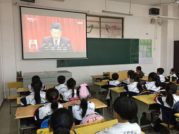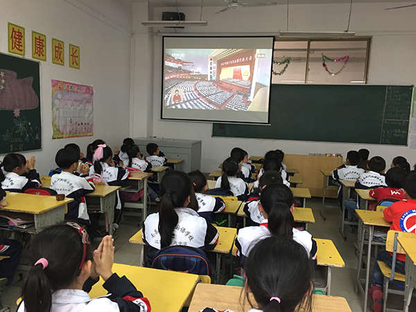 2017年10月18日,世界矚目的中國(guó)共產(chǎn)黨第十九次代表大會(huì)召開(kāi)了。南昌現(xiàn)代外國(guó)語(yǔ)象湖學(xué)校組織全校學(xué)校師生觀看了黨的十九大開(kāi)幕式電視實(shí)況直播。