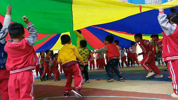 10月23日上午,又到了江西迪斯尼·象湖園孩子們最愛上的體育課,這一次旺仔老師帶來了《好玩的彩虹傘》主題體能課,彩虹傘的玩法多種多樣,如鍛煉跑跳能力的“拉個圓圈走走”,增強手部、腿部力量的游戲。鍛煉動作協(xié)調(diào)性和靈敏性的“海底捉小魚”,適合進行團體游戲的“蒙古包”,可以將彩虹傘拋上拋下鍛煉躲閃能力,還可以跳傘、轉(zhuǎn)傘、抓傘……訓(xùn)練幼兒走、跑的基本動作,感受集體活動的快樂的“人體山洞”。