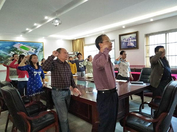在熊書記講話完畢,楊校長作了最后總結并強調:在我們今后的黨建工作中要有時間觀念,要認真地作記錄,并有強烈的責任意識與服從組織的紀律,嚴于律已,提高思想覺悟。