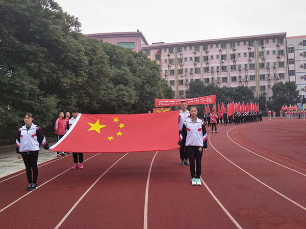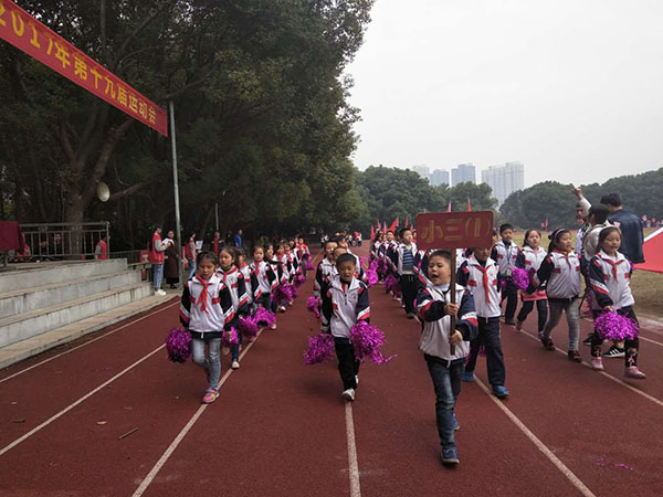 在莊嚴(yán)肅穆的升旗儀式結(jié)束后,楊校長為開幕式致辭。他指出,體育工作是建設(shè)文明校園的重要內(nèi)容,不僅能夠強(qiáng)健體魄,形塑身體,而且能夠培養(yǎng)健全的人格,鍛煉我們的意志,激發(fā)我們的進(jìn)取意識(shí)和創(chuàng)新活力,促進(jìn)學(xué)生的全面發(fā)展。一直以來,學(xué)校高度重視體育工作,認(rèn)真實(shí)施國家體育鍛煉標(biāo)準(zhǔn),鼓勵(lì)開展多種形式的體育健身活動(dòng),豐富體育賽事,完善體育設(shè)施,促進(jìn)健康體育理念融入師生日常生活的學(xué)習(xí)過程,推動(dòng)體育健身生活化、普及化、科學(xué)化。他希望廣大師生都能參與到本次運(yùn)動(dòng)會(huì),繼承發(fā)揚(yáng)體育精神,永不放棄,頑強(qiáng)拼搏,奮勇爭先。他希望全校師生以運(yùn)動(dòng)會(huì)為契機(jī),全面貫徹黨的十九大的教育方針,落實(shí)立德樹人根本任務(wù),發(fā)展素質(zhì)教育,培養(yǎng)德智體美全面發(fā)展的社會(huì)主義建設(shè)者和接班人。共建“和諧校園”,促進(jìn)孩子們平安、快樂、健康成長。