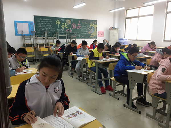 初賽當(dāng)天,8:30分參賽考生陸陸續(xù)續(xù)來到考場,在指示牌和學(xué)??紙龇植紙D的指引下,很快便找到了考場位置。上午9:00整,隨著一聲清脆的鈴聲,大賽正式開始,考生個個臉上都洋溢著自信的表情,筆下的英文字母像是跳躍的音符,譜寫著美妙的五線譜。隨后,我們學(xué)校校長李金玉陪同組委會領(lǐng)導(dǎo)對考點進(jìn)行了巡視,巡考組反映考點考紀(jì)嚴(yán)明,秩序井然,監(jiān)考嚴(yán)肅,參賽學(xué)生答題認(rèn)真,11時整大賽圓滿落下帷幕。