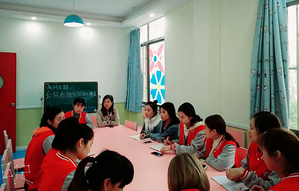 幼兒園班級常規(guī),是幼兒園一日各種活動中應(yīng)該遵守的基本行為規(guī)則。11月15日中午,我園開展了以《如何有效組織幼兒排隊(duì)》為主題的全體教師和姐妹園教師一起互動式教研研討活動,研討活動在教研組長嚴(yán)敏紅教師的組織帶領(lǐng)下,自由交流發(fā)言的方式使大家娓娓而談,策略、經(jīng)驗(yàn)及存在的問題展開交流和分享。