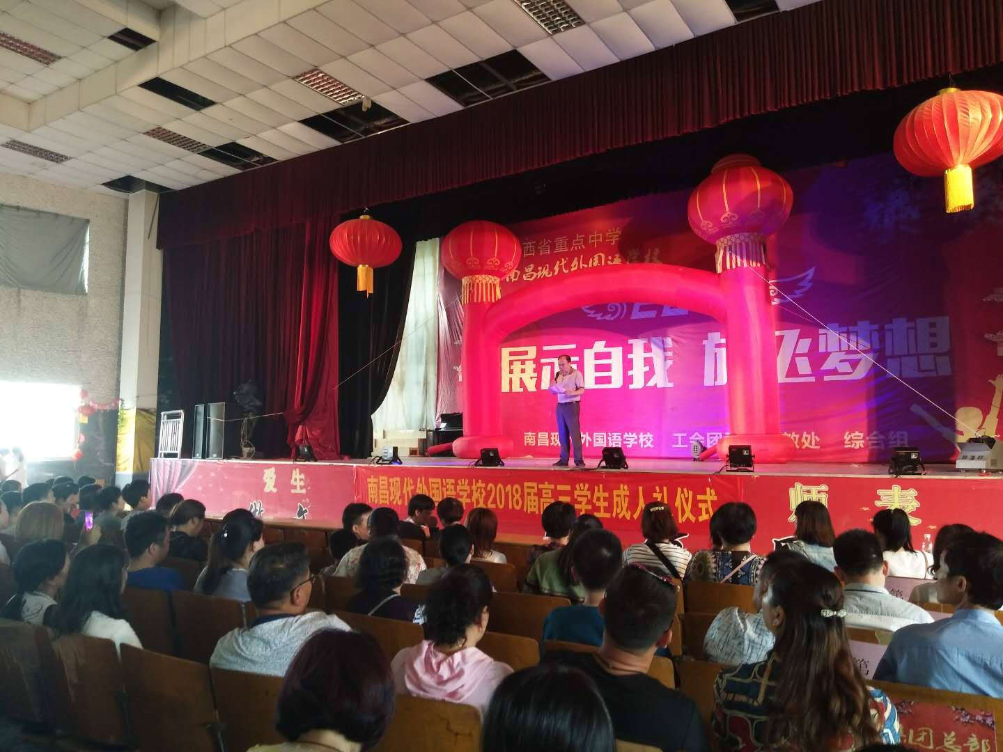 以“青春勇?lián)厝?,?zé)任成就夢想”為主題的南昌現(xiàn)代外國語學(xué)校2018屆成人禮活動,5月14日下午2:30在學(xué)校演播大廳隆重舉行。高三全體師生及家長齊聚學(xué)校演播大廳,迎接這神圣的一刻。學(xué)校楊端煌校長、小學(xué)部涂玉萍校長、高中部王文群主任、高三年級組