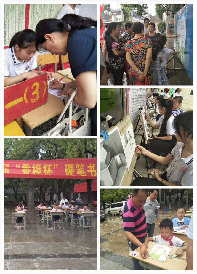 教學樓后的林蔭操場,年輕的媽媽俯身欣賞女兒的書法創(chuàng)作,年輕的爸爸凝神賞視兒子的作品,那眉宇之間是難以言說的情意。