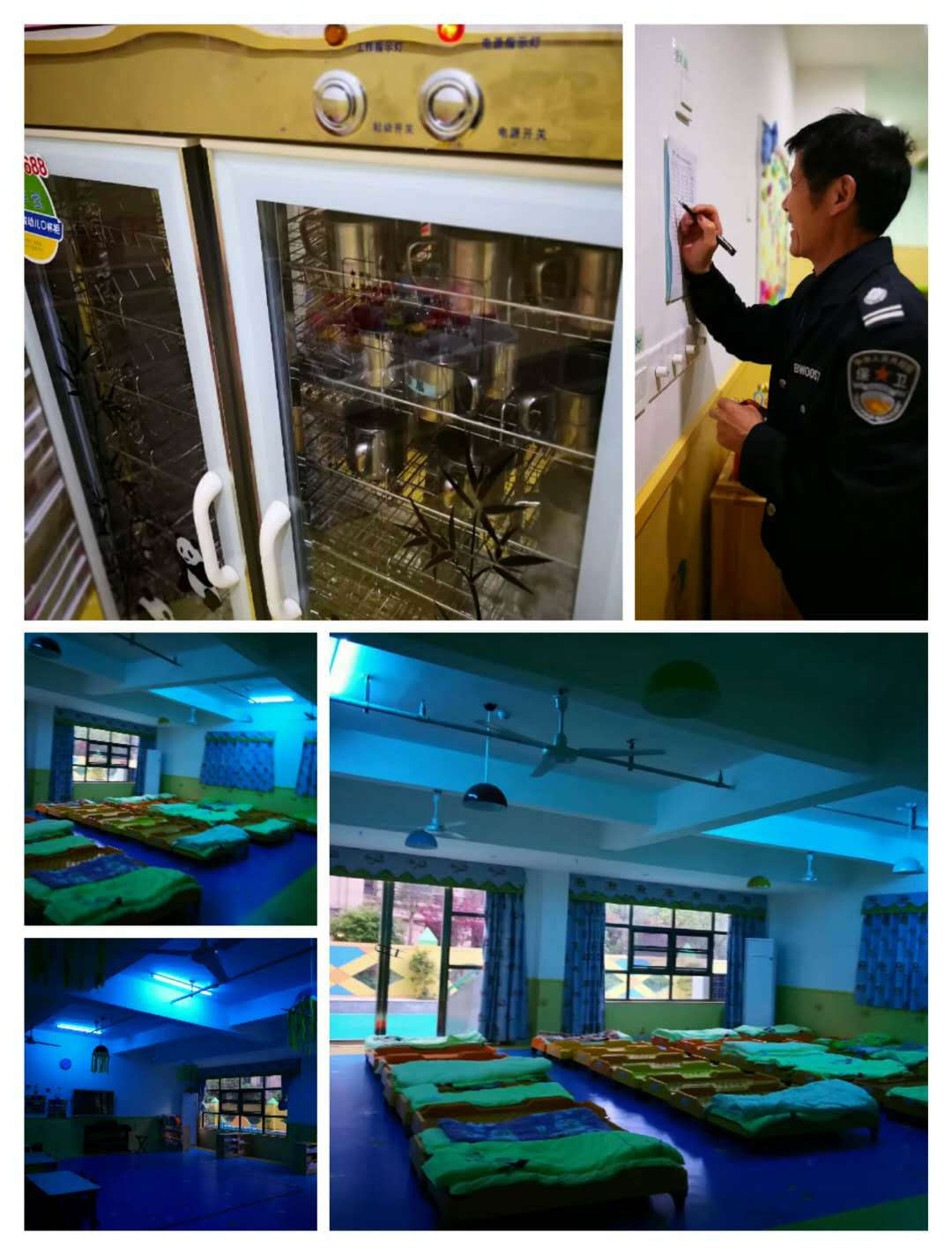 每周將幼兒用書拿出操場(chǎng)暴曬消毒,對(duì)教室及寢室進(jìn)行紫外線消毒,幼兒餐具及口杯的消毒工作。