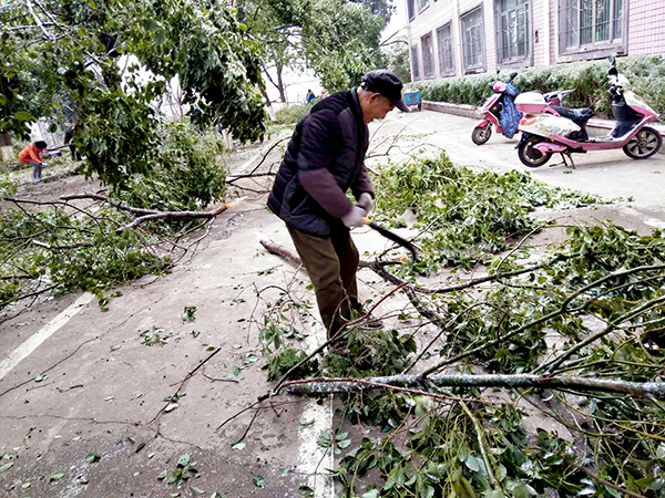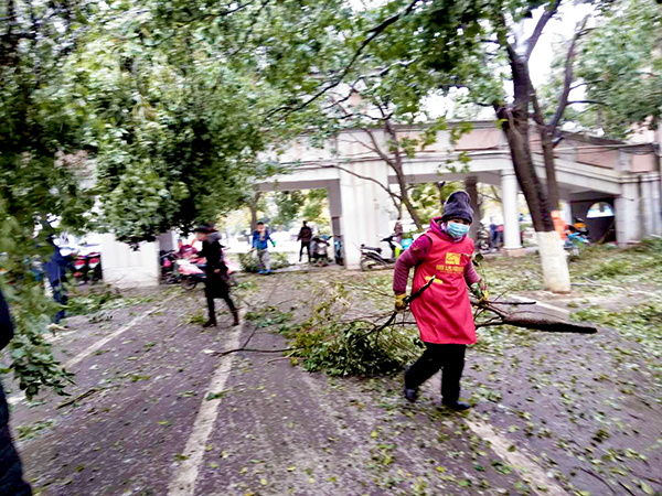 ■一些學生看到老師們在辛苦的勞動,他們也積極的參與進來,有的幫掃落葉,有的幫抬樹枝。