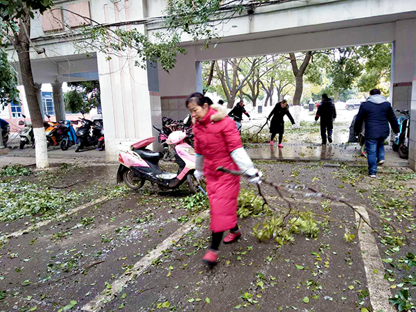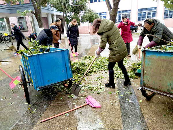 今年的冬天,南昌遇上十年不遇的極寒天氣,寒風刺骨、道路結冰、樹掛冰凌,大批樹木枝丫折斷,掉在路面,給師生出行帶來了諸多不便。29日一早,為了不影響學校的教育教學,教職員工在楊校長的統(tǒng)一部署下,大家拿起鐵鍬、掃帚迅速展開清雪、除枝的勞動。