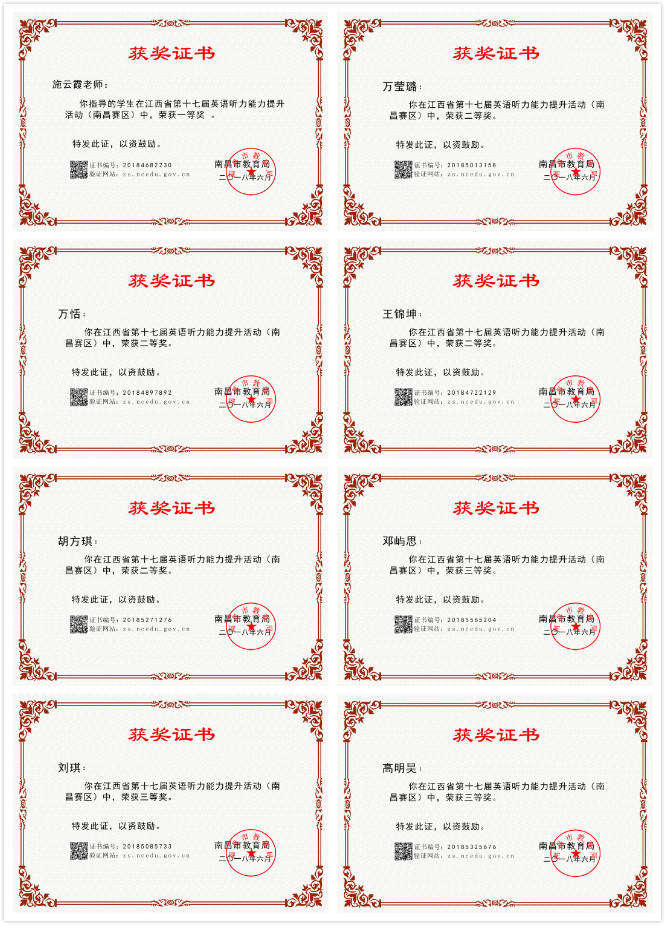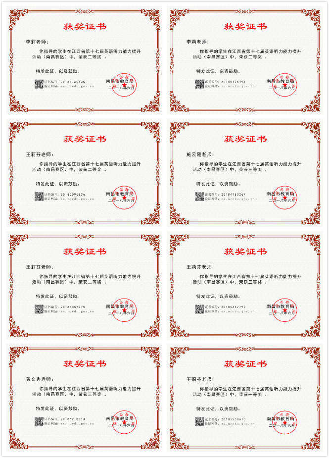 (以上獲獎(jiǎng)信息均可登錄南昌市教育信息網(wǎng)查詢)